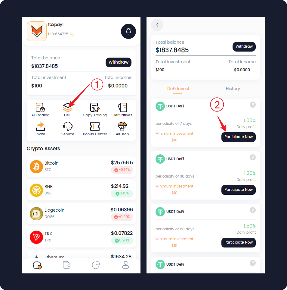 - FoxPay offers five DeFi stabilization mode. Different rates of return based on the length of the investment. The minimum requirement for all mode starts with $10. All mode will be available to you at the moment of the end of the cycle, when you can get your invested funds and earnings at once.